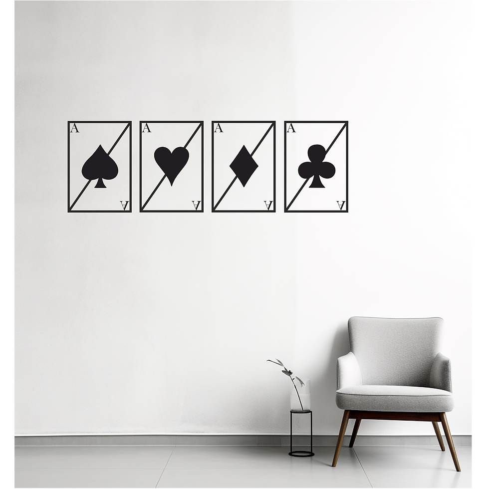 Ace of Cards Wall Decor, Set of 4 Self Adhesive Wooden Laser Cutouts for Home De